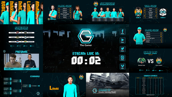 Gamer Esport Broadcast package deal is an After Effects template that includes everything you can start your game, streaming channel or Youtube channel.